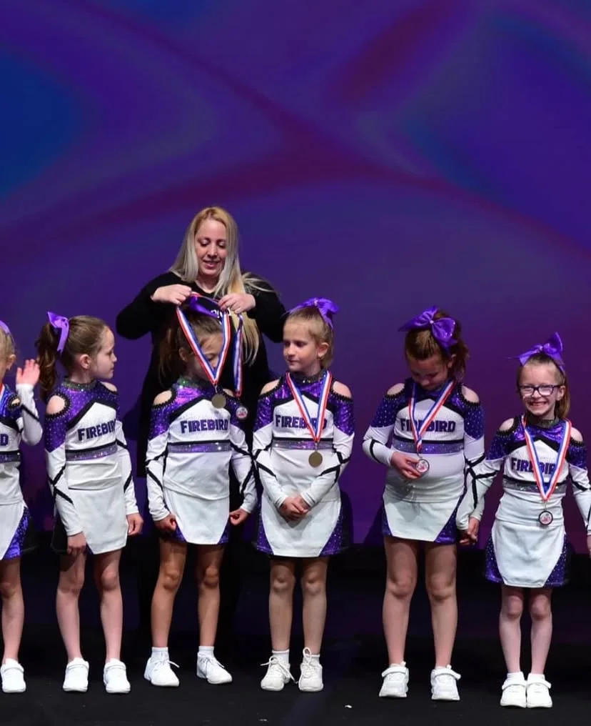 Há 5 anos, fundei a Firebird Cheer and Dance junto com minha filha — atleta de cheerleader, busquei especializacoes e hoje sou treinadora de mais de 200 athletas entre times competitivos e recreacionais.